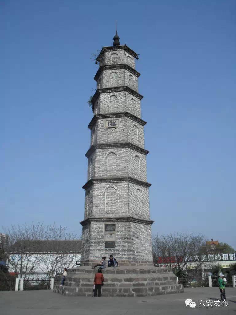 龙头塔位于舒城城关东侧,俗称“城锥”,因第四层有碑刻“龙头”二字而称龙头塔。六角七层楼阁式实心砖塔,高二十点七米,刹为生铁铸,分三层,葫芦状。始建于明天启元年(1621),清乾隆二十九年(1764)重修。一九五六年、一九九七九年两次维修。一九八四年十一月被公布为县级重点文物保护文物。