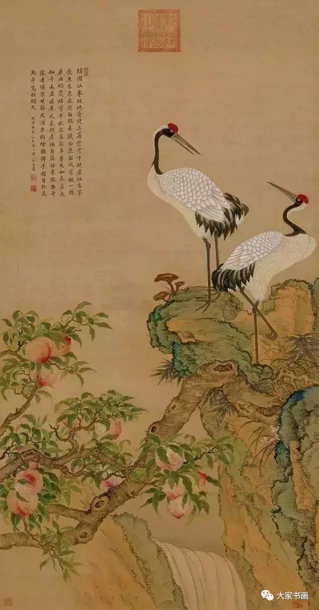 清 郎世宁 花阴双鹤 绢本